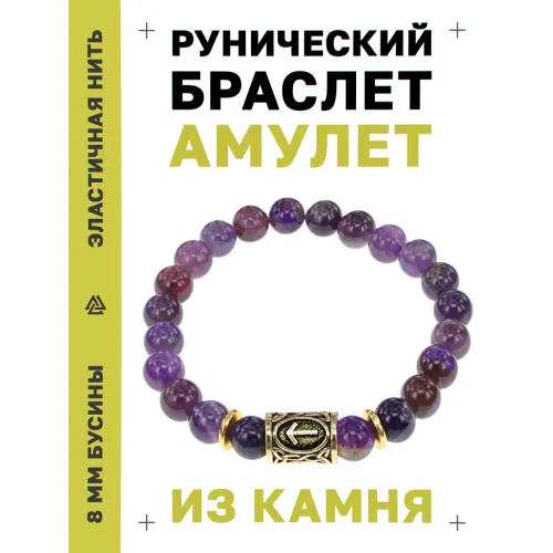 Стрейч-браслет с руной Тейваз и бусинами из натурального аметиста.