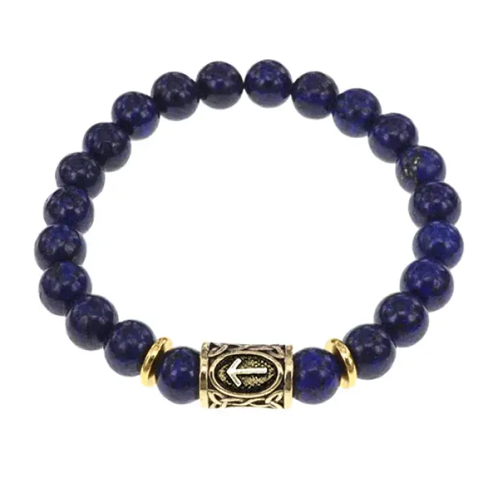 Браслет с руной Тейваз и нат. камнем Лазурит BSRG-20-10