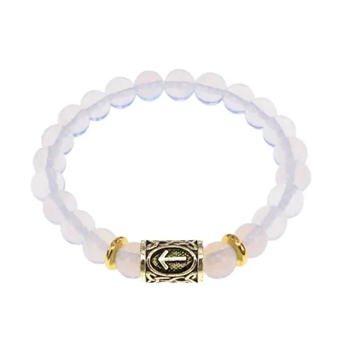 Браслет с руной Тейваз и синт.камнем Лунный камень BSRG-20-11