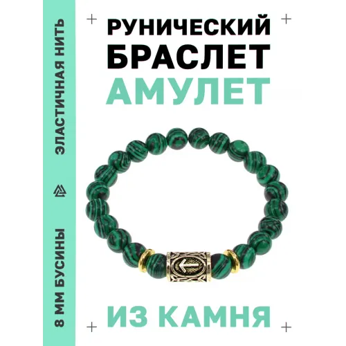 Браслет с символом руны Тейваз и синтетическим камнем малахит.