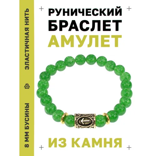 Рунический стрейч-браслет с символом Тейваз и бусинами из натурального нефрита.