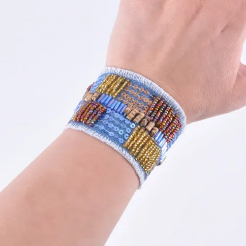 Джинсовый браслет с бисером и пайетками, 20см UF092-01
