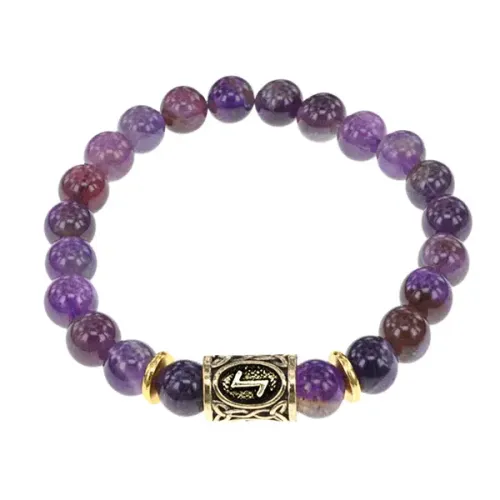 Стрейч-браслет из натурального аметиста с нанесённой руной Эйваз.