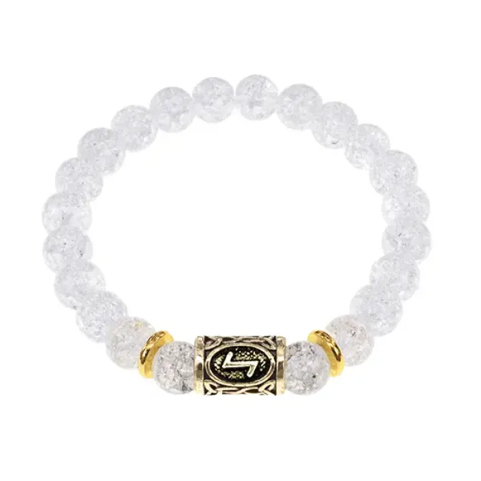 Браслет с руной Эйваз и синтетическим камнем Сахарный кварц.
