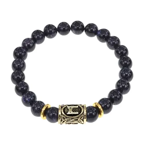 Браслет с руной Манназ и синт. камнем Синий авантюрин BSRG-23-02