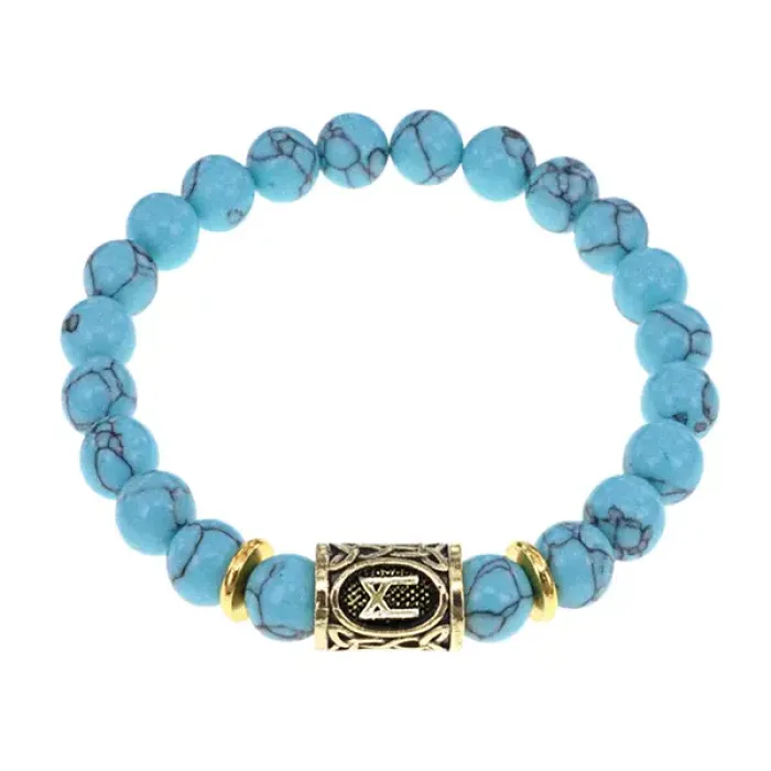Стрейч-браслет с руной Манназ и бусинами из синтетической бирюзы.