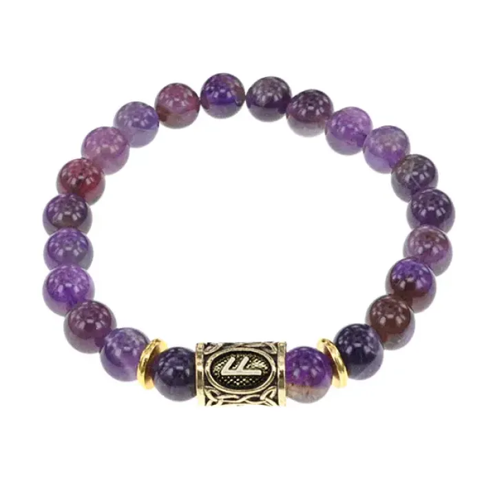 Стрейч-браслет с руной Ансуз и натуральным камнем аметист.