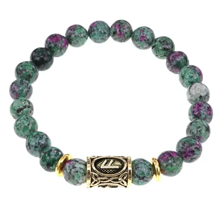 Браслет с руной Ансуз и синт.камнем Цоизит BSRG-24-22