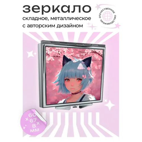 Складное зеркало квадратное Аниме девушка неко и сакура ZER2-0384