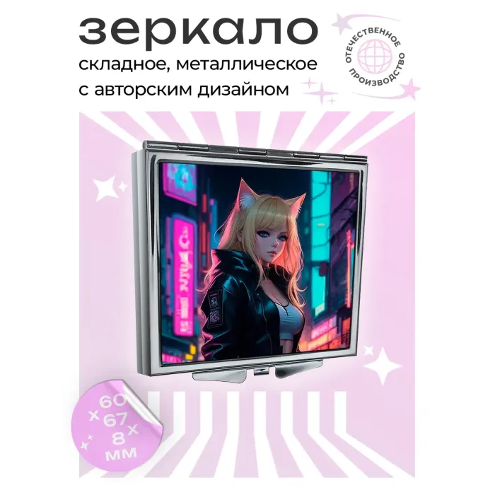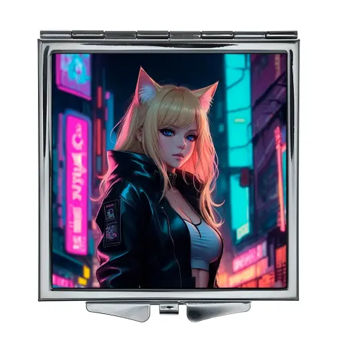 Складное зеркало квадратное Аниме девушка неко в городе ZER2-0391