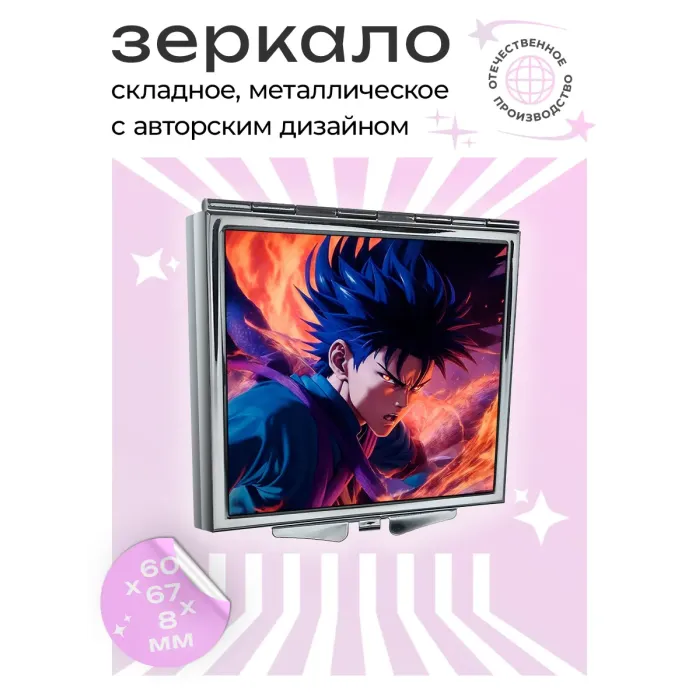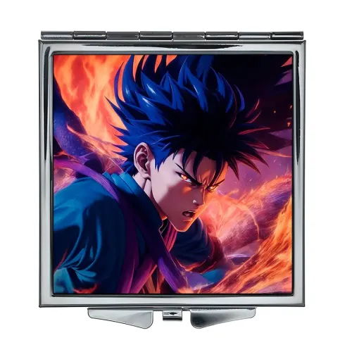 Складное зеркало квадратной формы с полноцветной печатью изображения в аниме-стиле.