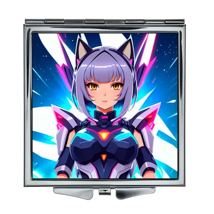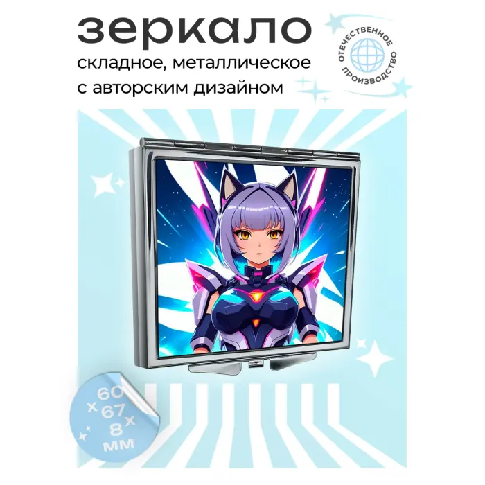Складное квадратное зеркало с полноцветным изображением аниме-девушки.
