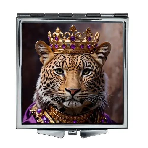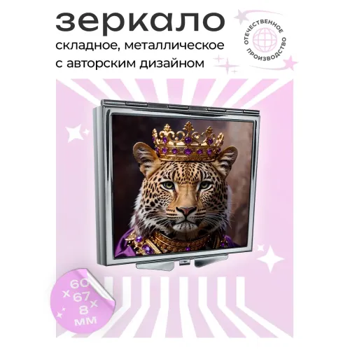 Складное зеркало квадратное Леопард с короной ZER2-0402