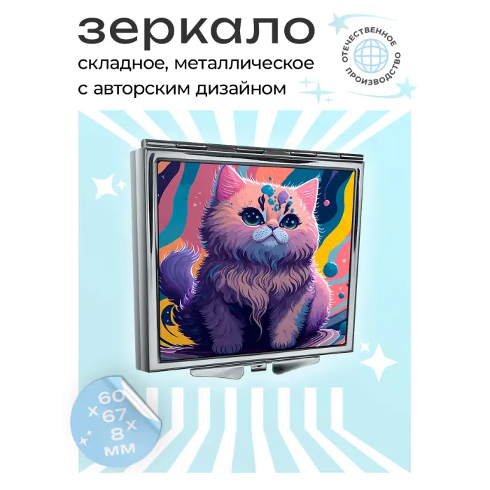 Складное зеркало квадратное Кошка ZER2-0421