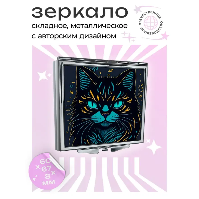 Складное зеркало квадратное Угрюмый кот ZER2-0425