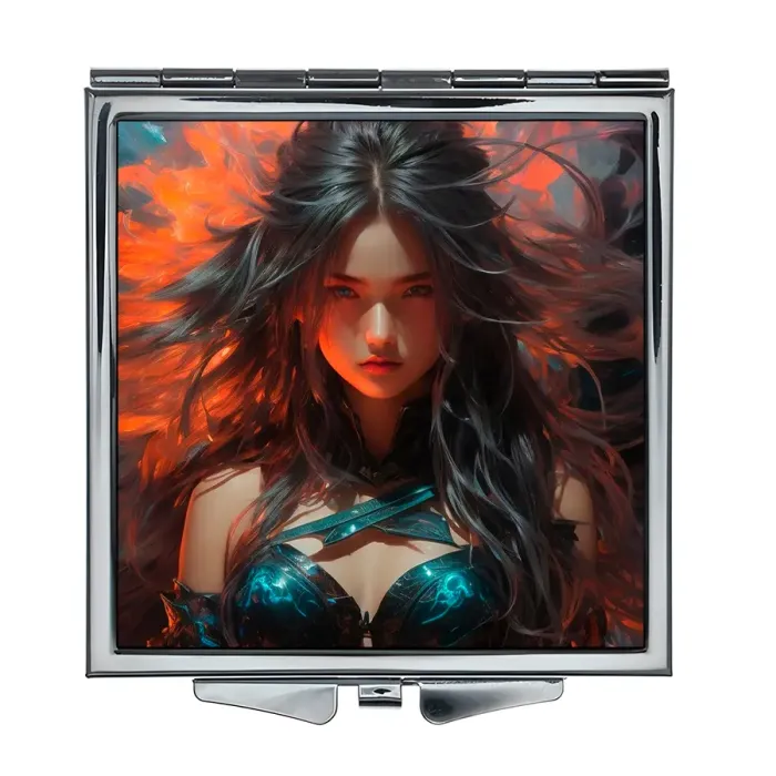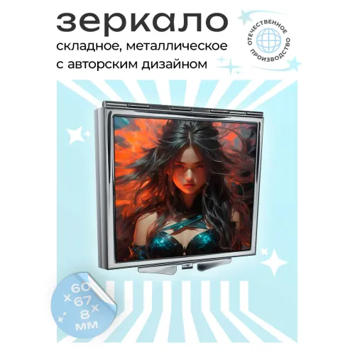 Складное квадратное зеркало с полноцветным изображением на металлической основе.