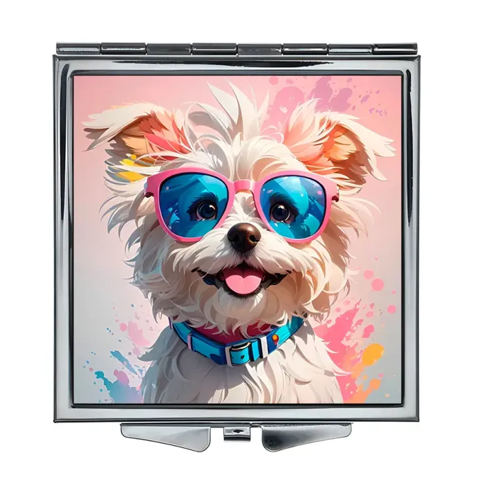 Складное квадратное зеркало с полноцветным изображением Уайт терьера в очках.