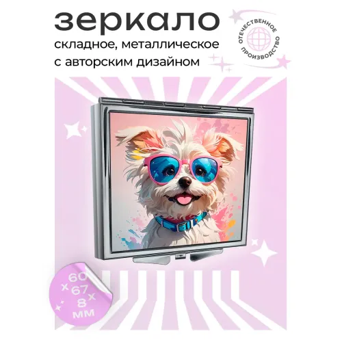 Складное зеркало квадратное Уайт терьер в очках ZER2-0452
