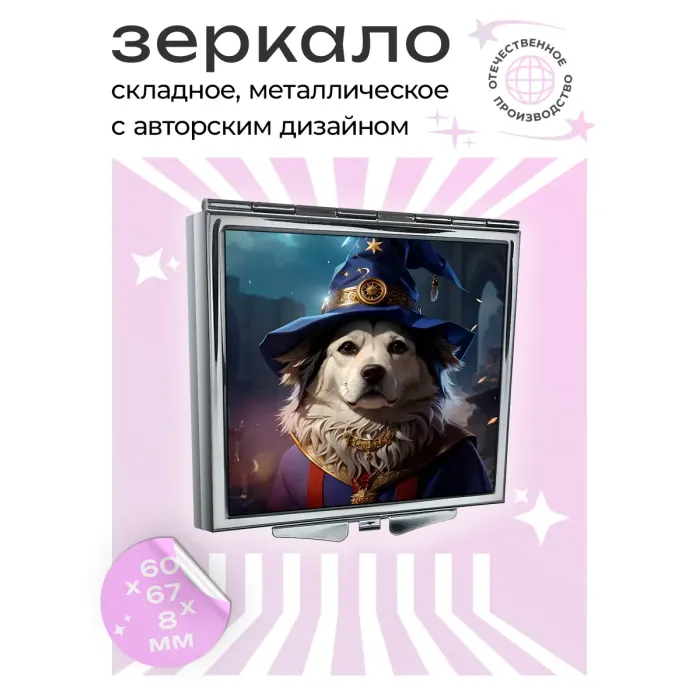 Складное зеркало квадратное Колдующий пес ZER2-0454