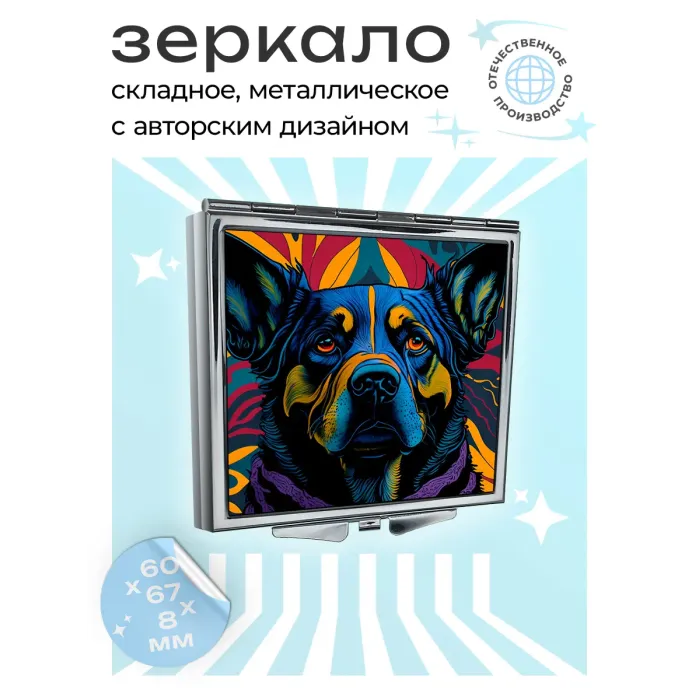 Складное зеркало квадратное Собака ZER2-0455