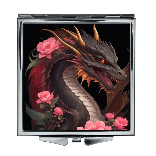 Складное зеркало квадратное Дракон и цветы ZER2-0464