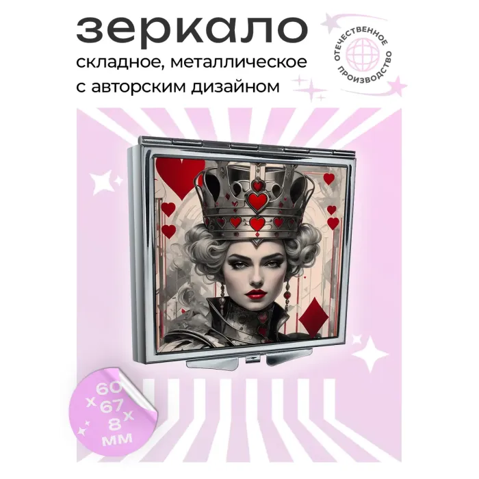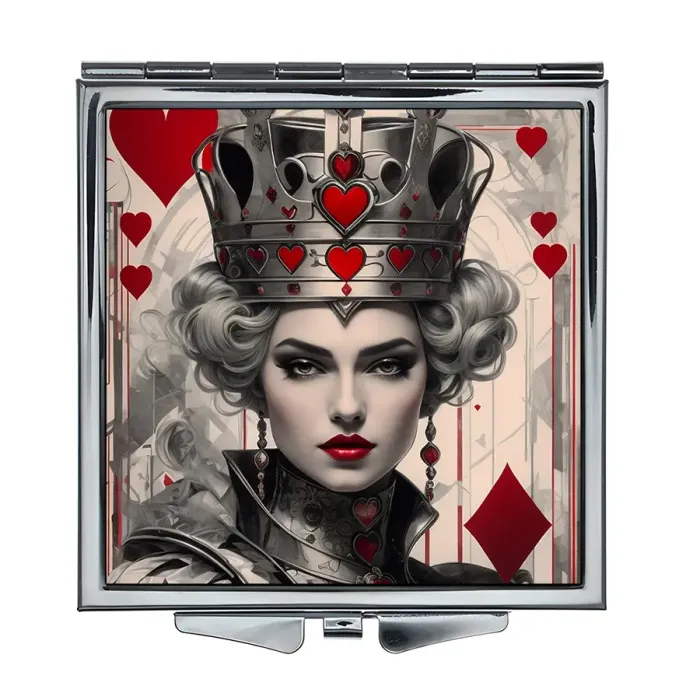 Складное квадратное зеркало с полноцветным изображением «Белая королева» на металле.