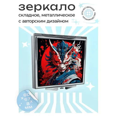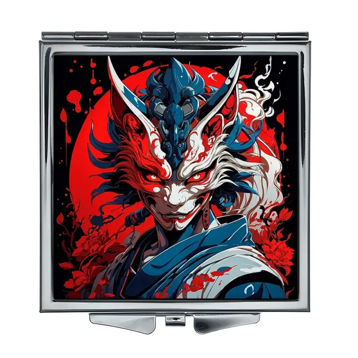 Складное зеркало квадратное Японская маска демона ZER2-0494