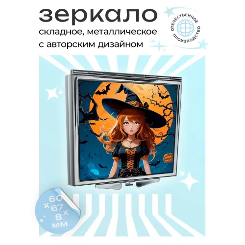 Складное квадратное зеркало с полноцветным изображением «Молодая волшебница».