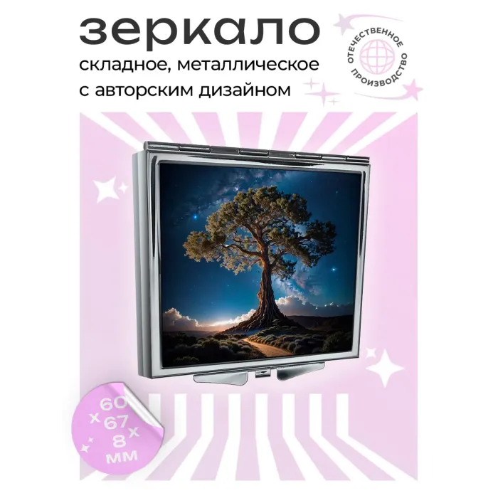 Складное зеркало квадратное Дерево и созвездия ZER2-0515