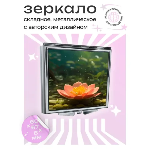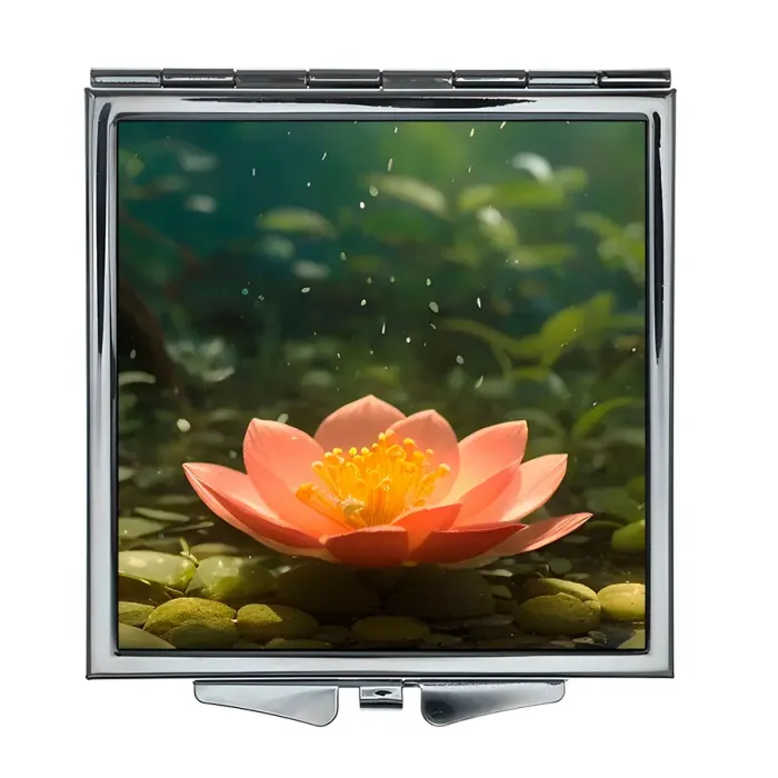 Складное зеркало квадратного формата с полноцветным изображением «Лесной лотос» на металле.