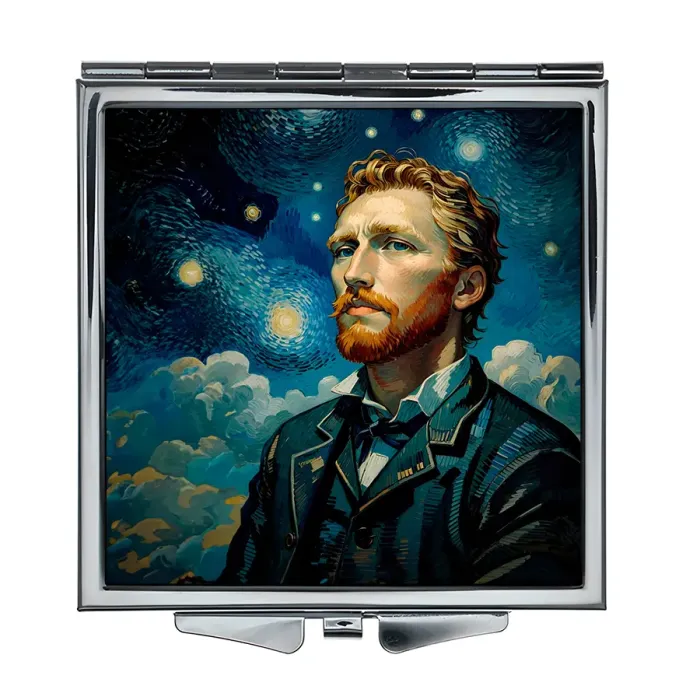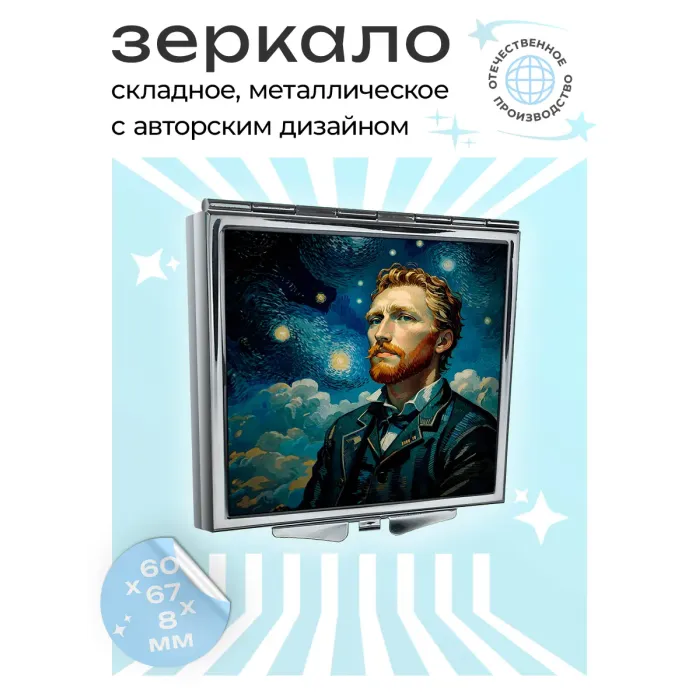 Складное зеркало квадратной формы с изображением, вдохновленным творчеством Ван Гога.