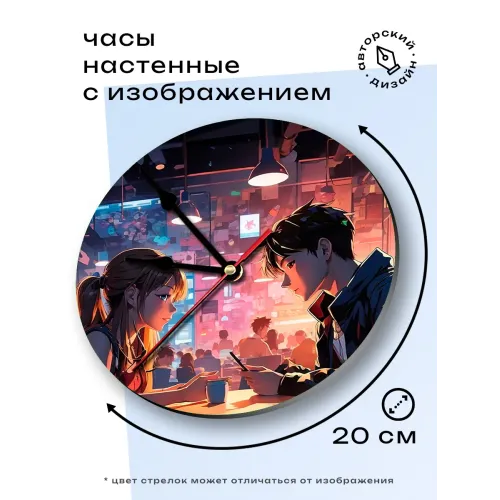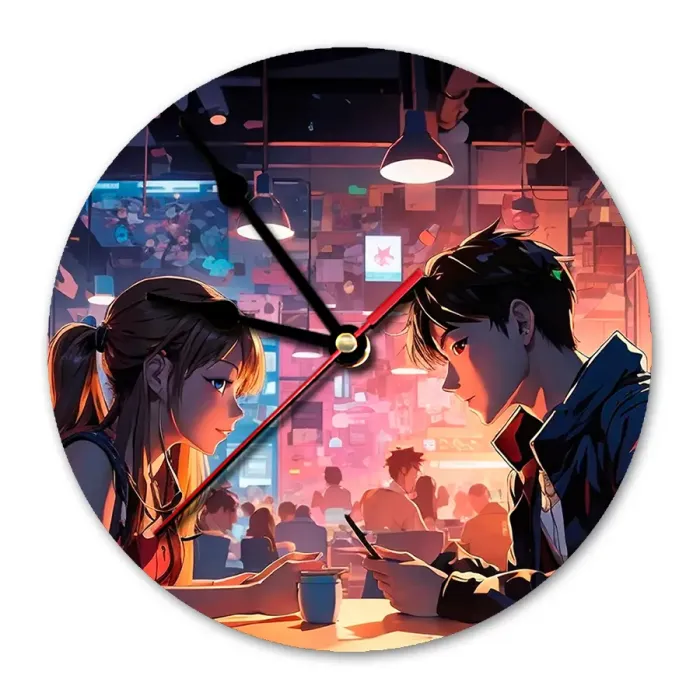 Часы настенные Аниме пара в кафе 20см, пластик MCH246