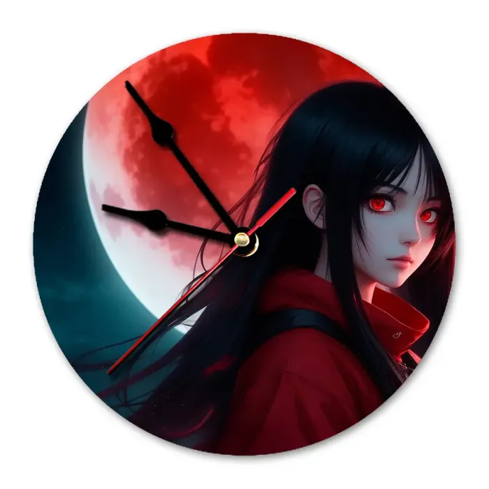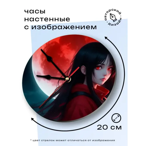Настенные часы с изображением аниме-девушки. Циферблат диаметром 20 см выполнен из вспененного пластика ПВХ.