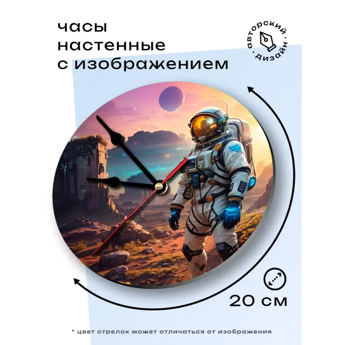 Настенные часы с изображением планеты. Циферблат диаметром 20 см изготовлен из вспененного пластика ПВХ.