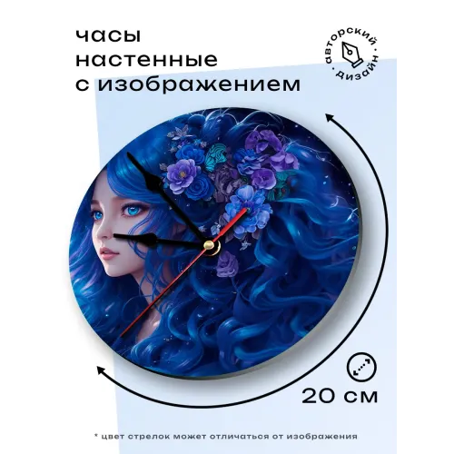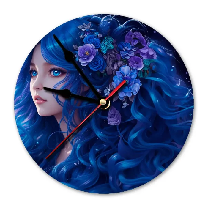 Настенные часы «Девушка с синими волосами» с циферблатом из вспененного пластика ПВХ.