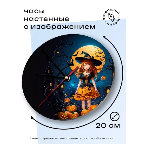Настенные часы "Девушка Хэллоуин" — это оригинальный элемент декора, который добавит атмосферу праздника в любое пространство. Циферблат диаметром 20 см выполнен из лёгкого вспененного пластика ПВХ, что обеспечивает долговечность и легкость монтажа. Часы оснащены петлёй для удобного подвешивания на стене.