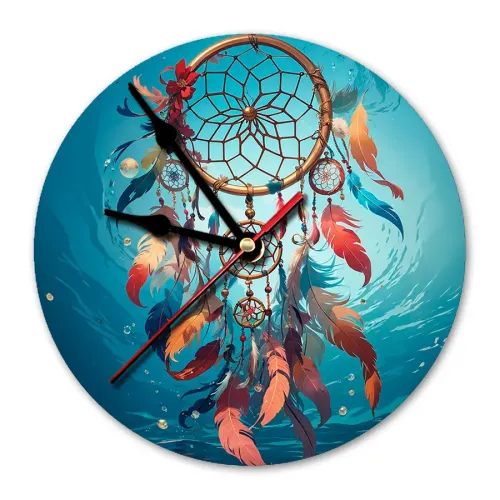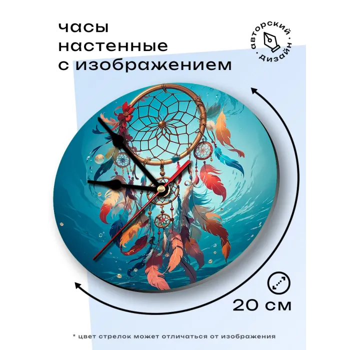 Настенные часы с дизайном «Ловец снов». Циферблат диаметром 20 см выполнен из вспененного пластика ПВХ.