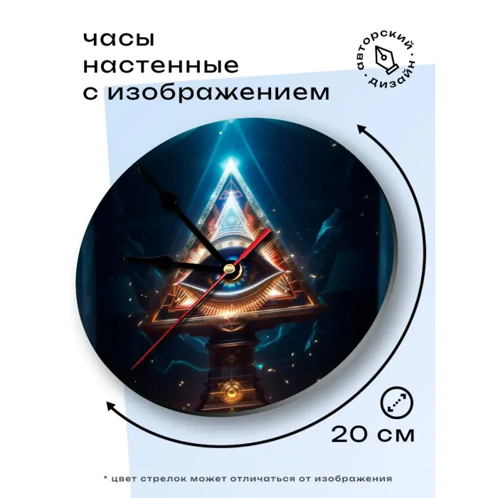 Настенные часы «Всевидящее око» диаметром 20 см. Материал — вспененный пластик ПВХ, изображение нанесено методом аппликации.