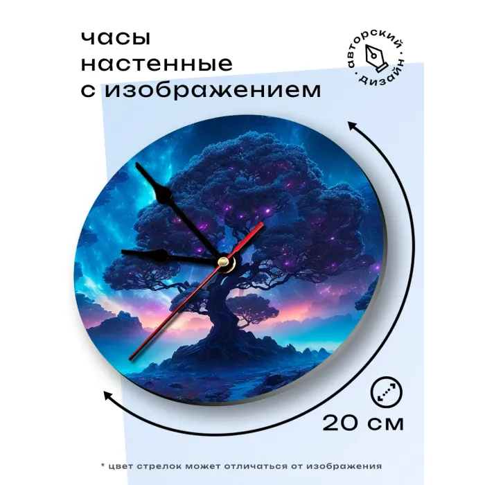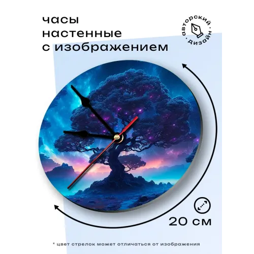 Настенные часы с циферблатом диаметром 20 см. Дизайн «Сакральное дерево» нанесён на основу из вспененного пластика ПВХ.