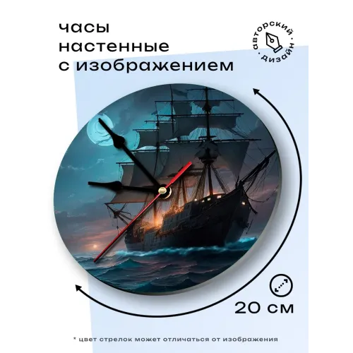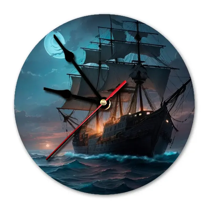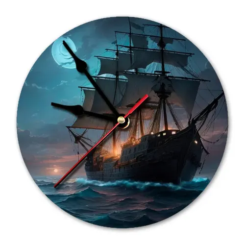 Настенные часы с изображением парусника и полнолуния. Циферблат диаметром 20 см выполнен из вспененного пластика ПВХ.