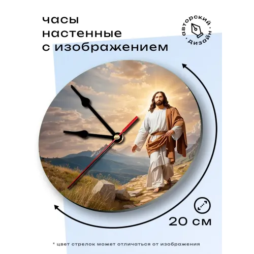 Настенные часы с изображением Иисуса. Циферблат диаметром 20 см выполнен из вспененного пластика ПВХ.
