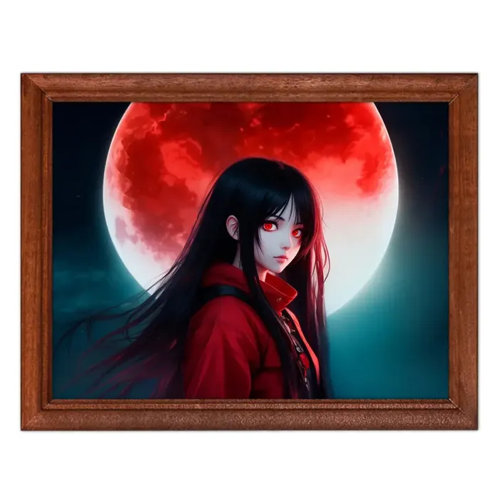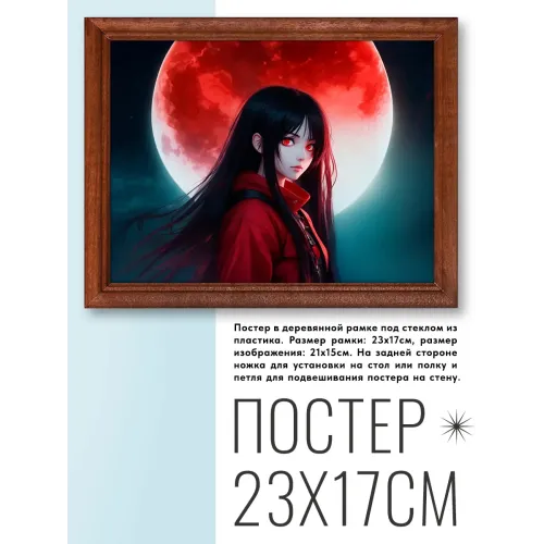 Постер в рамке для интерьерного декора. Деревянная рамка со стеклом, изображение аниме девушки.