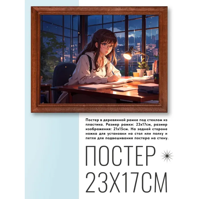 Размеры и комплектация: Размер постера 20х15 см, общий размер в рамке 22х17 см. Упаковка: пузырьковая пленка.