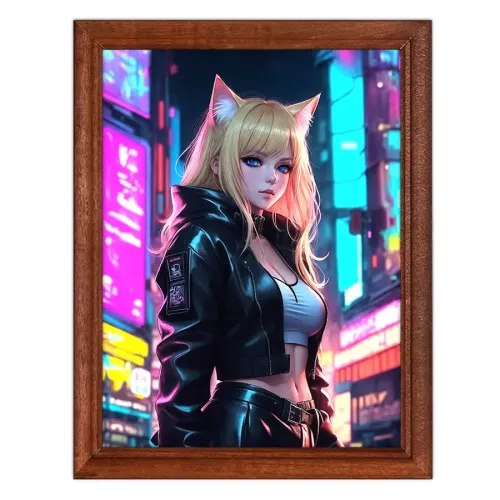 Постер в рамке 17х22см Аниме девушка неко в городе POSV-0454