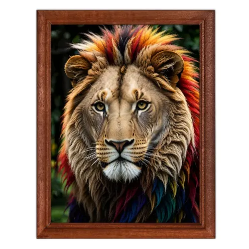 Постер в рамке с изображением льва. Деревянная рамка под стеклом.
