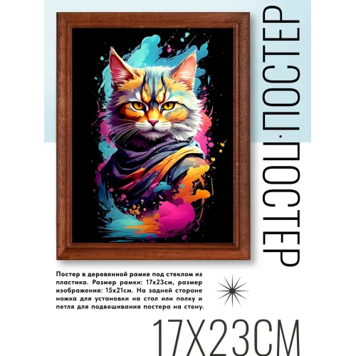 Размеры и комплектация: Размер постера 15х20 см, общий размер в рамке 17х22 см. Упаковка: пузырьковая плёнка.