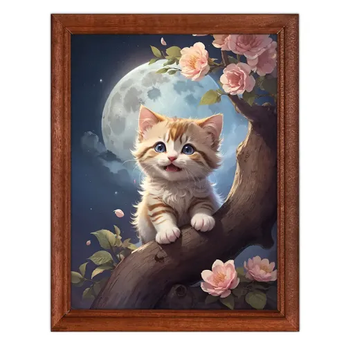 Постер в рамке с изображением котёнка на дереве. Деревянная рама под стеклом.