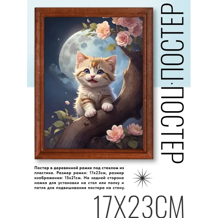 Постер в рамке 17х22см Котенок на дереве POSV-0465