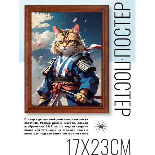 Постер в рамке 17х22см Кот самурай POSV-0471