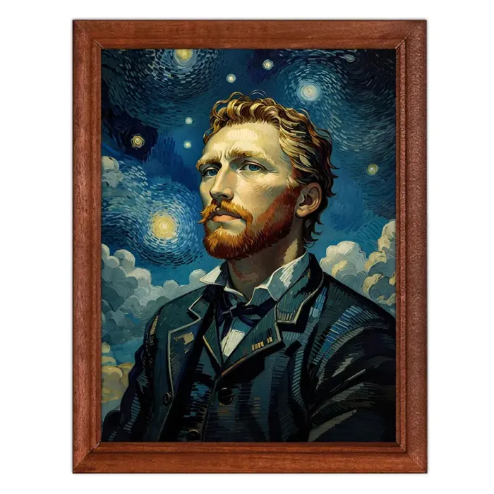 Постер в деревянной рамке под стеклом с изображением Ван Гога для интерьерного декора.